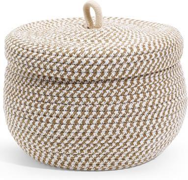 Canasta tejida de cuerda de algodón para almacenamiento, forma circular. Dimensiones: Ancho: 17 cm Profundidad: 21 cm Alto: 17 cm