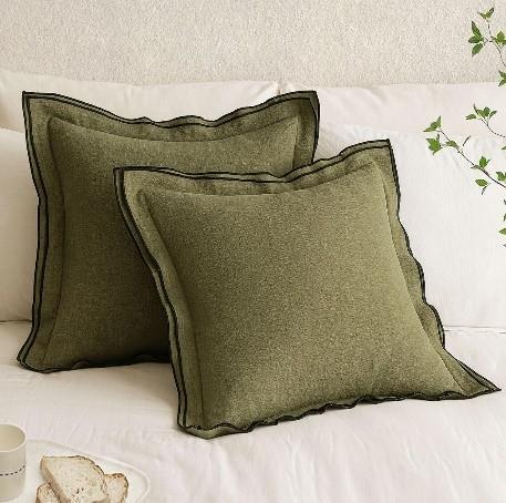 Set de 2 fundas de lino, color verde oliva: Dimensiones: 60×60 cm