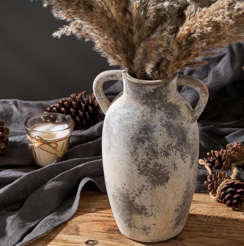 Jarrón de Cerámica, 16.7 largo x 14.5 de ancho x 25cm de alto, estilo rústico (porcer)