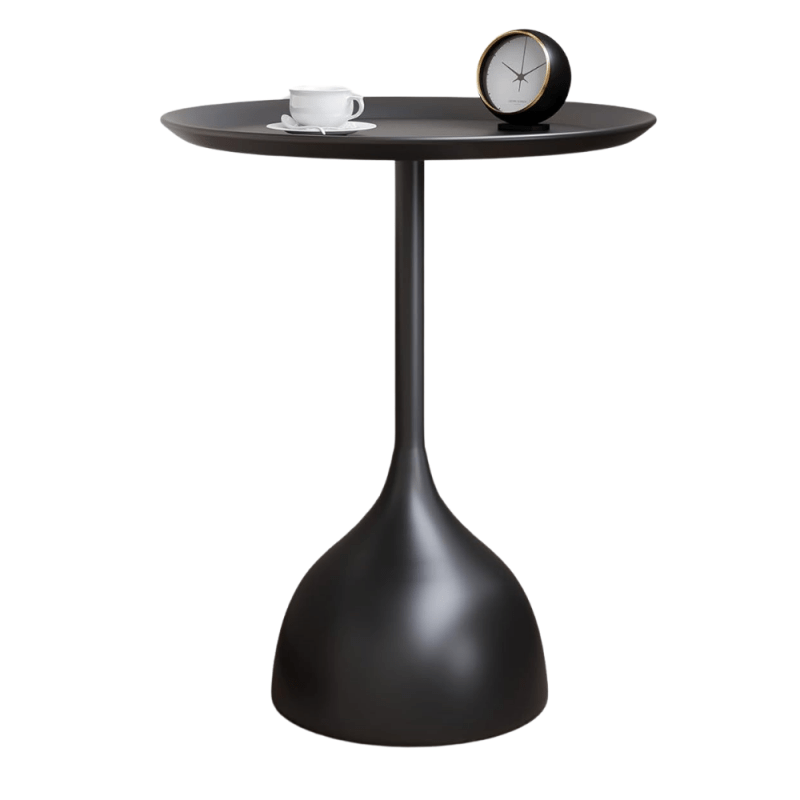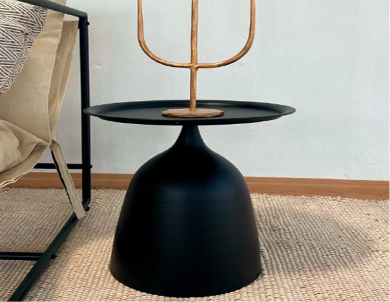 Mesa redonda de metal color negro, disponible también en blanco, acabado mate.