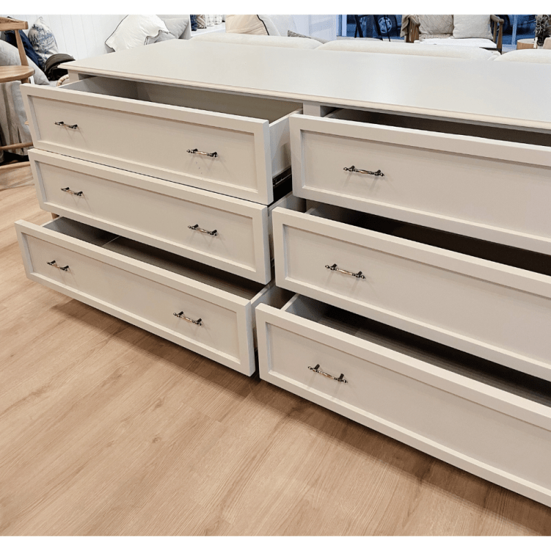 CREDENZA DE TRIPLAY DE PINO .90 BARNIZADA A COLOR A ELEGIR, CON ENCIMERA CON NARIZ BOLEADA, PATAS CIRCULARES